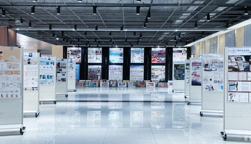 本次展览汇集了工业设计、产品设计、建筑学三个专业100余件优秀作品,毕业生巧妙结合专业能力与爱校荣校情怀,聚焦自然风景、非遗传承、人文纪实等,主题鲜明,风格多元、形式丰富。通过胶片展览、设计图稿以及摄影摄像等多种媒介,生动呈现了学子们在专业领域的前沿探索与实践成果。本次展览中不乏学生自主创业项目的成果展示,包含了个人摄影艺术展。这不仅是学生个人能力的展现,更是学院推动“展创融合、校企联动”育人机制的生动案例。